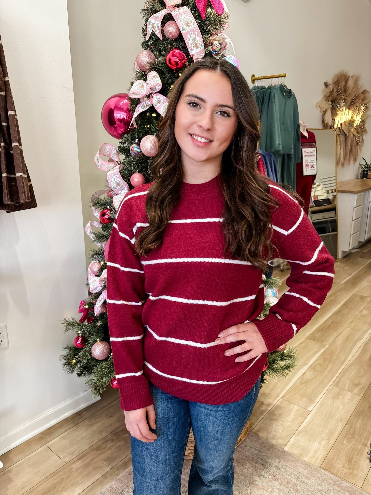 Cozy & Chic: Cabernet Striped Round Neck Sweater